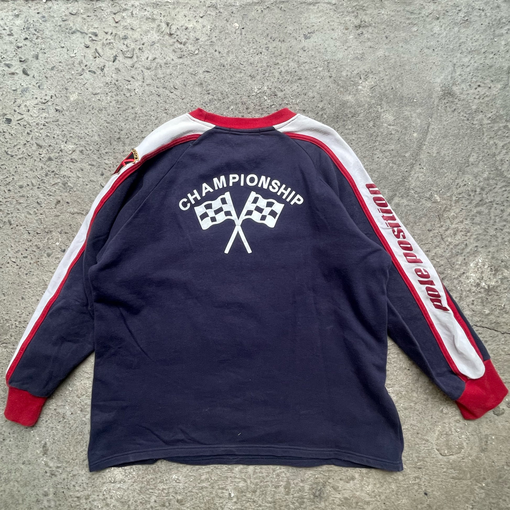 Vintage Charro Racing sweatshirt in navy with red and white sleeve panels.