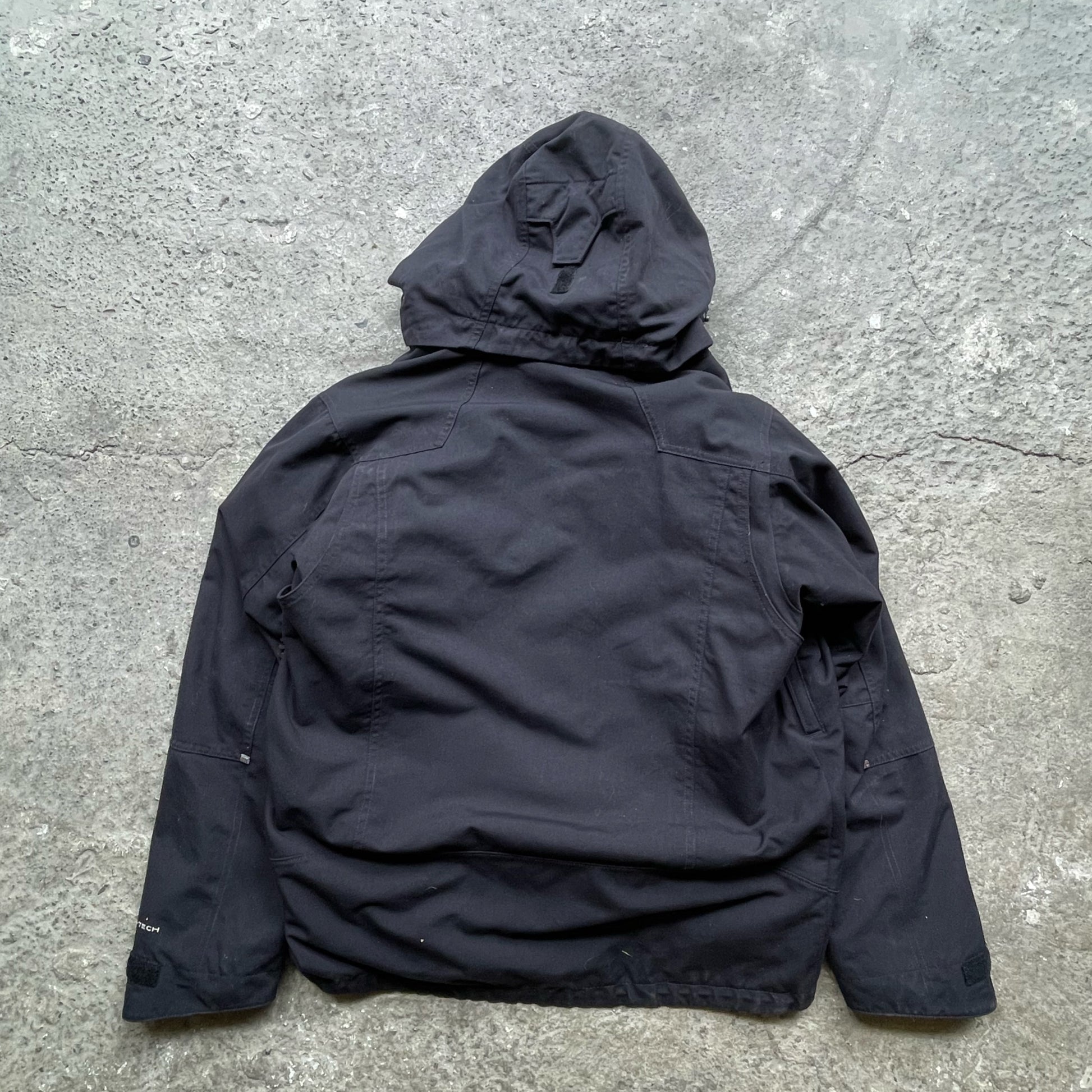Waterproof shell with adjustable hood, multiple pockets and reflective Titanium details.